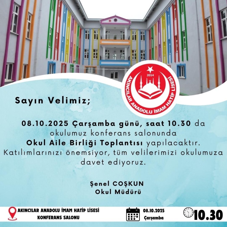 08.10.2025 Çarşamba günü Okul Aile Birliği toplantısı gerçekleştirilecektir.